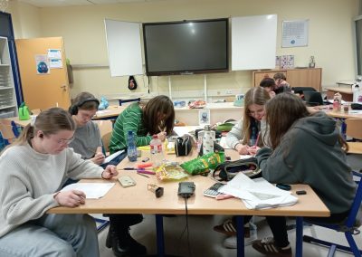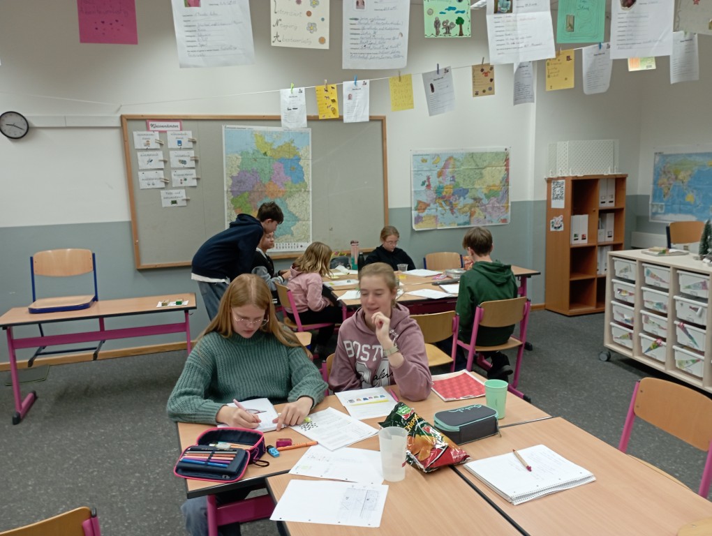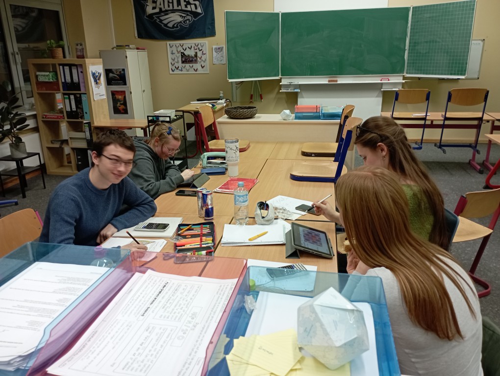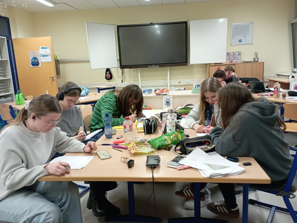 Die Atmosphäre war von Anfang an großartig: Konzentrierte Stille wechselte sich ab mit Jubelschreien, wenn eine besonders knifflige Nuss geknackt wurde. Unterstützt wurden unsere Teilnehmerteams dabei tatkräftig von ehemaligen Schülerinnen und Schülern sowie mehreren Lehrkräften, die für Motivation, Verpflegung und natürlich bei Bedarf auch für einen kleinen Denkanstoß sorgten.